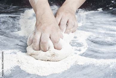 - Trabaja la masa con la palma de la mano, doblando y girando.
